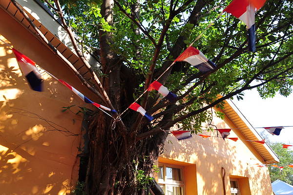 會場佈置也頗具巧思,配合安平樹屋的建築風格,樹上懸掛的荷蘭國旗,也為活動增添了不少異國氣氛。
